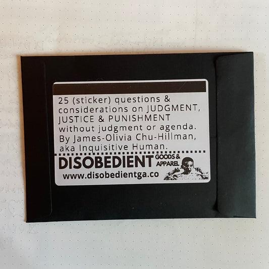 Questions & Considerations on: judgment, justice, & punishment – an InquisitiveHuman x DisobedientGA sticker pack